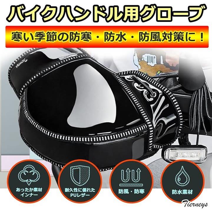バイクグローブ ハンドルカバー 自転車ハンドルカバー 防寒 防水 防風 対策 スクーター PUレザー製