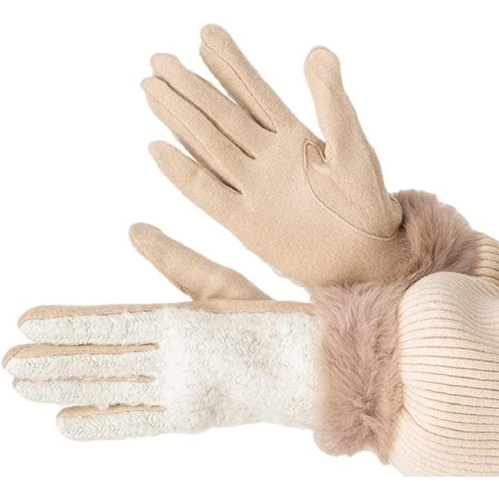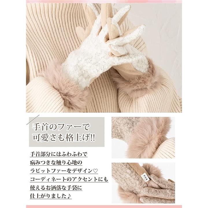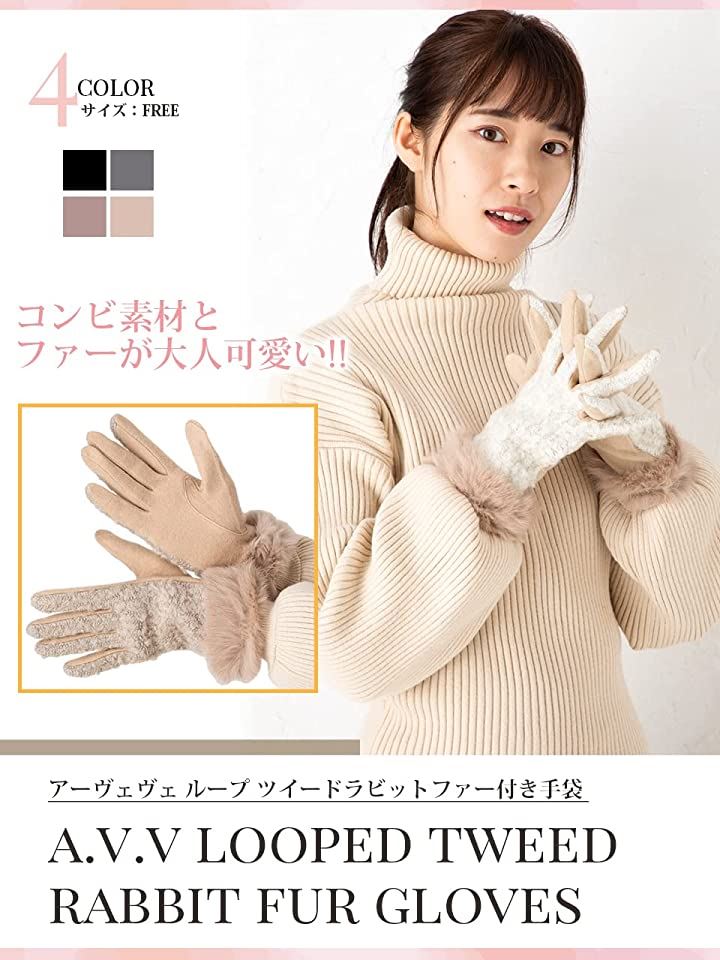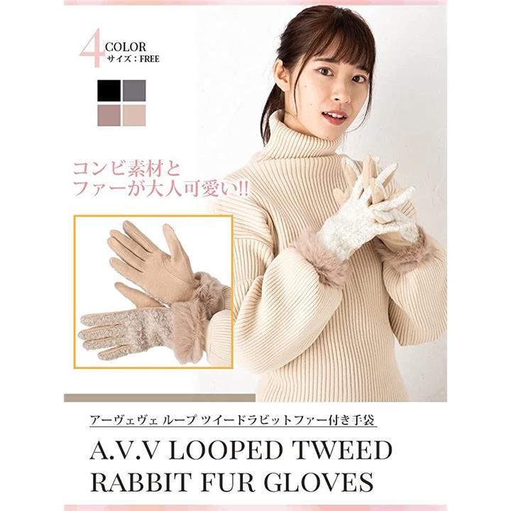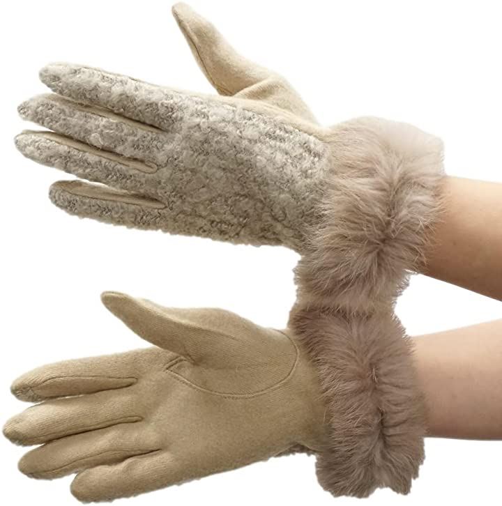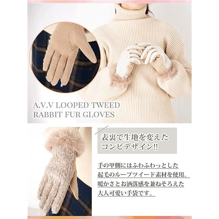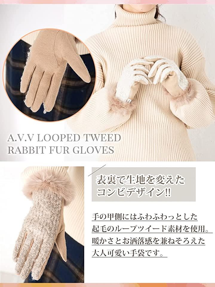 ふわふわ ループ ツイード ラビットファー付き レディース ウール 混 手袋 ギフトケース付 21-22cm M-L