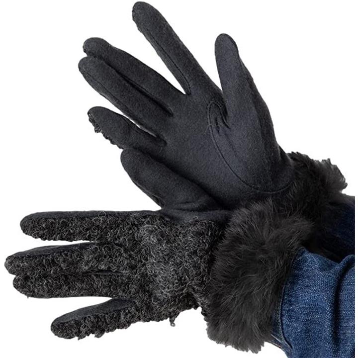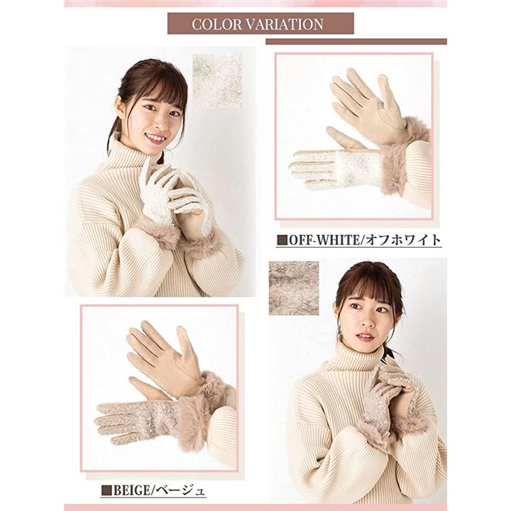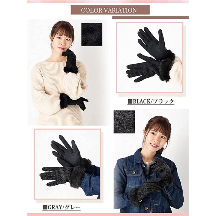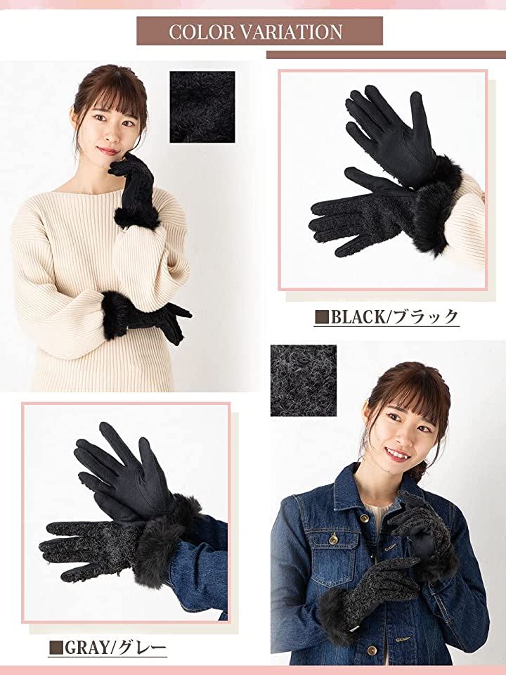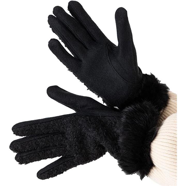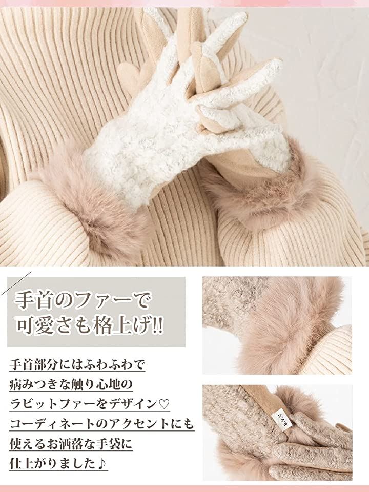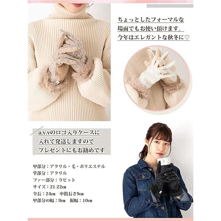 ふわふわ ループ ツイード ラビットファー付き レディース ウール 混 手袋 ギフトケース付 21-22cm M-L