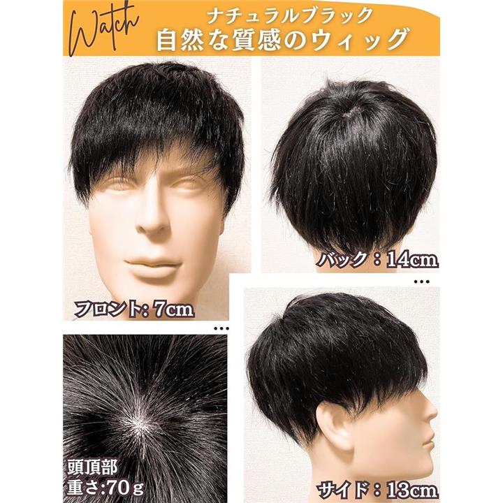 「商品詳細」 (3)サイズ:ストレートセミロング フロント13cm バック 23cm、サイド 22cm (4)重さ:約 65.9g (5)カラー:ナチュラルブラック 黒髪 (6)対象: メンズ 男性 医療用 プレゼント 中高年 ハゲ隠し (7)用途: うぃっぐ フルウィッグ かつら