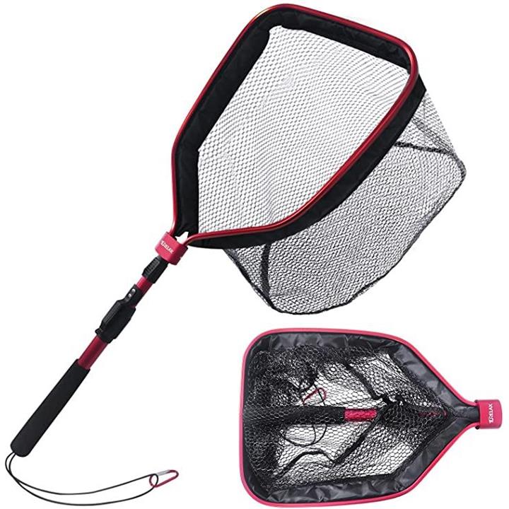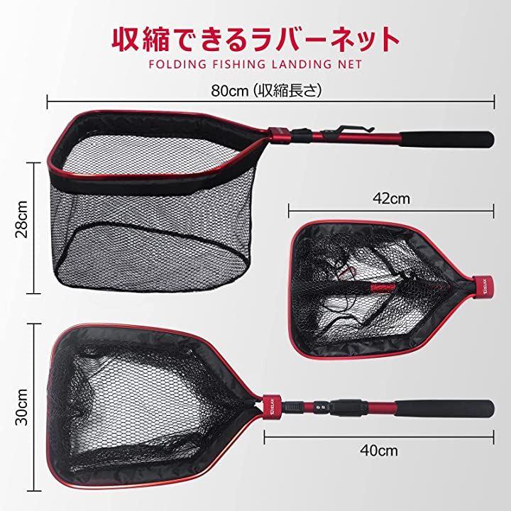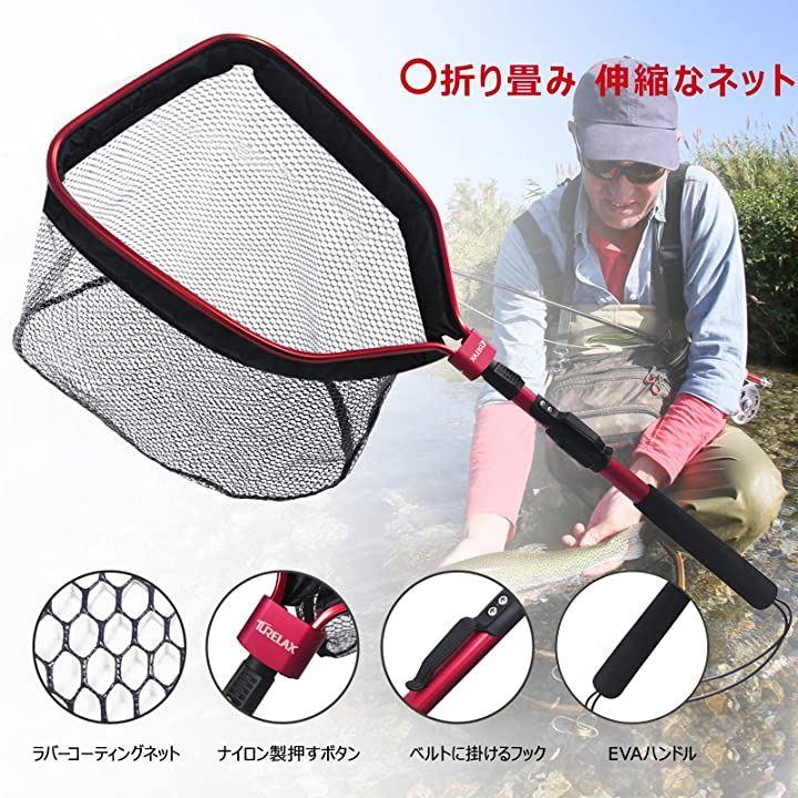 ラバーコーディングネット フローティング ランディングネット 100cm 玉網 タモ網 釣りネット EVAハンドル レッド&ブラック