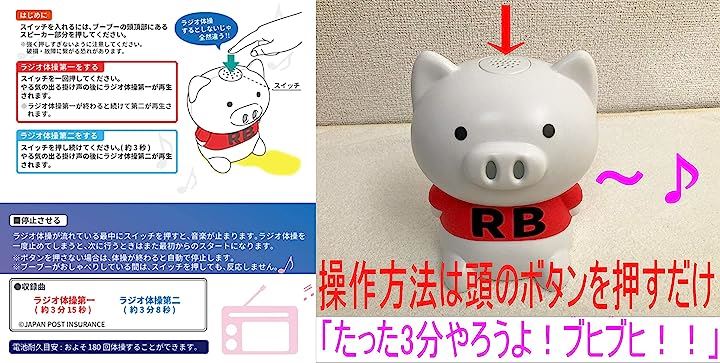 体操ブーブー MEGA 2 ラジオ体操 第1 + 第2 同時収録 オリジナルボイスver. 単三電池3本 お手入れタオル付