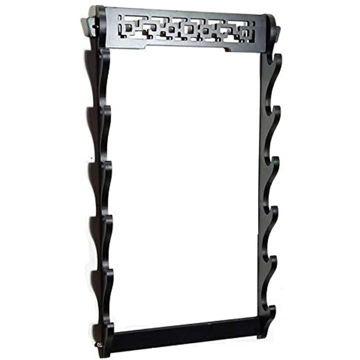 ラシック 刀掛け 木製黒塗り 彫り台 飾り棚 日本刀 模造刀 居合刀 竹刀 壁掛け用