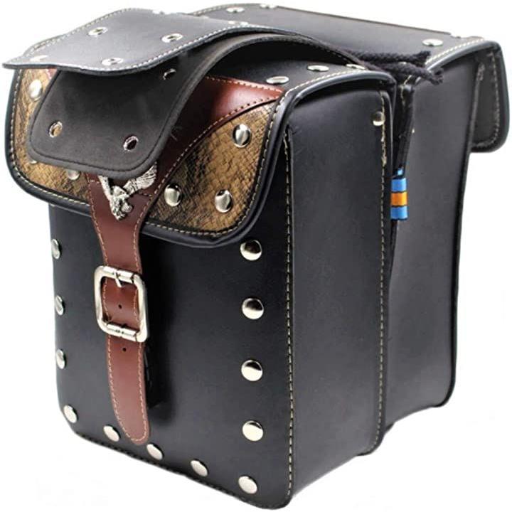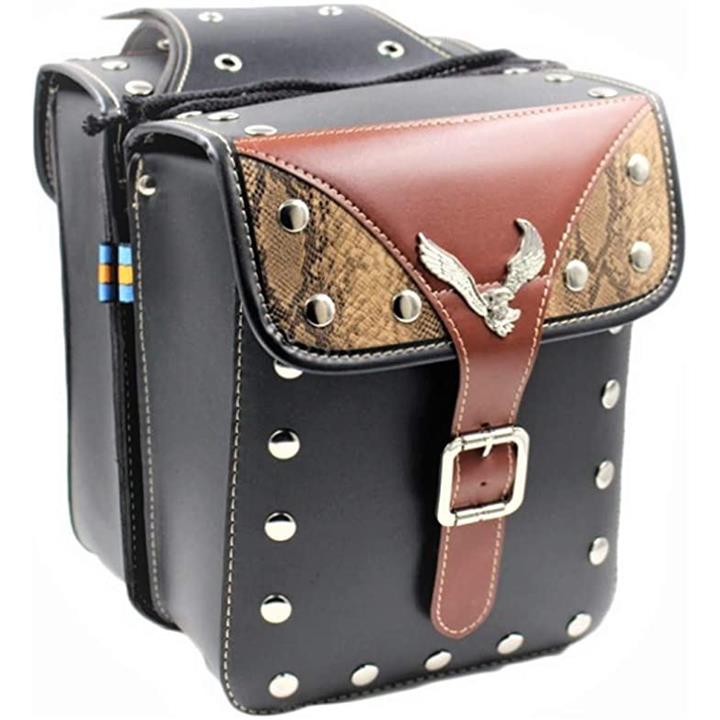 互換品 サイドバッグ サドルバッグ 汎用 雨に強い合成革 ヘビ革デザイン 工具入れ ツーリングの必需品