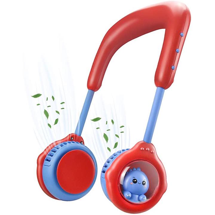 可愛い カートゥーン 首掛け扇風機 静音 羽なし 16h長時間作業 ネック ダブルファン ハンズフリー 携帯扇風機 ネック冷却クーラー pink+green