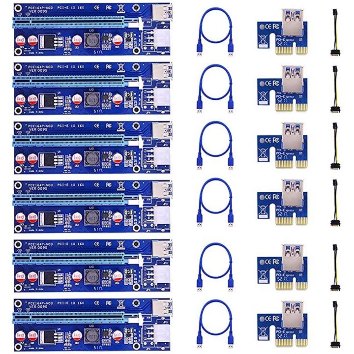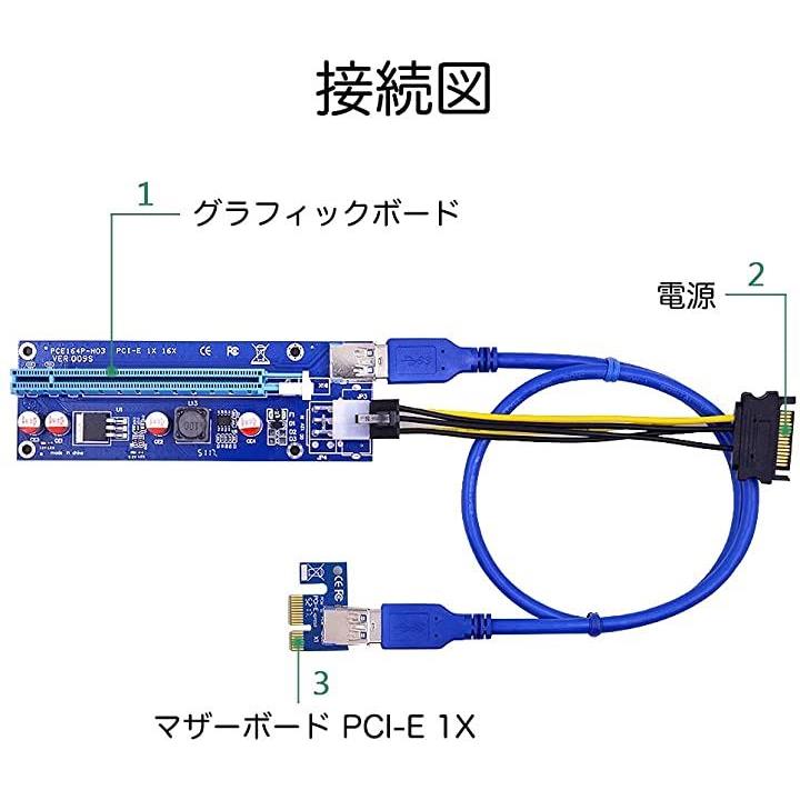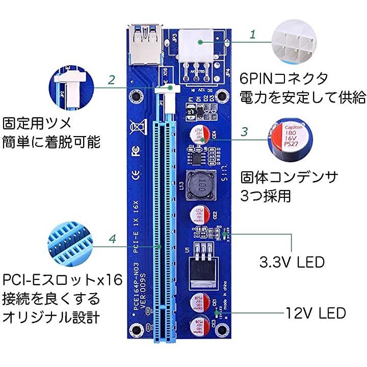 互換品ライザーカード 6個セット 最新 009S マイニング pcie x1 x4 x8 x16 60cm 延長 6pin電源ケーブル グラフィックボード ビットコイン