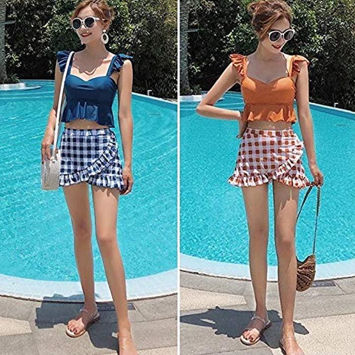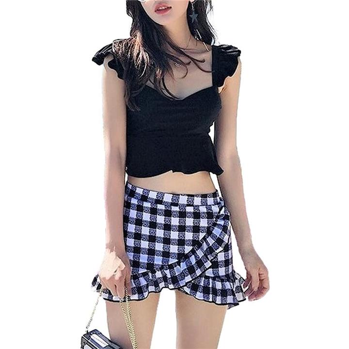アイラカリラ フリル ビキニ 水着 Vカット 胸パッド 付き チェック セパレート ビーチウエア スイムウエア レディース ブラック XL