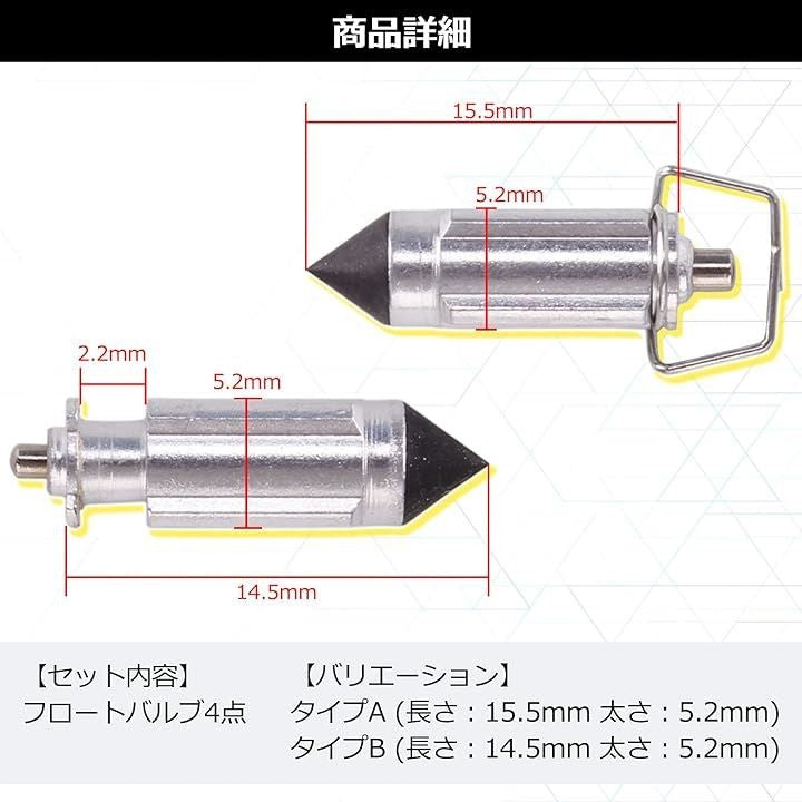 互換 フロートバルブ CVキャブ 汎用品 社外 4気筒