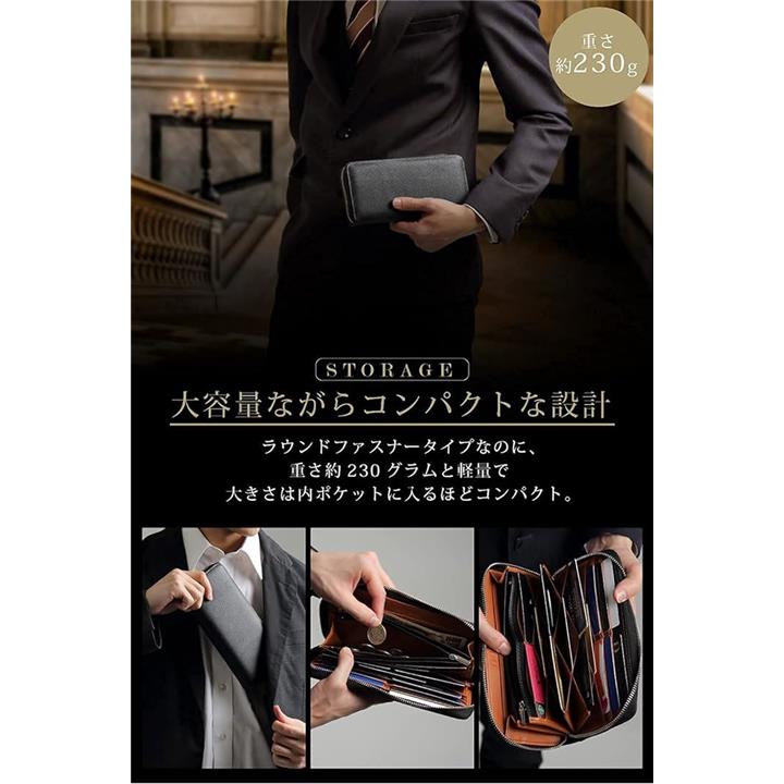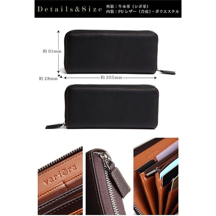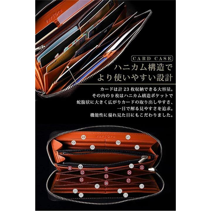 variora「持ち歩きたい物を持ち歩く為の長財布」 カード類23枚を収納出来る大容量 ハニカム構造のカードポケット採用 本革製 ラウンドファスナー (Black) |