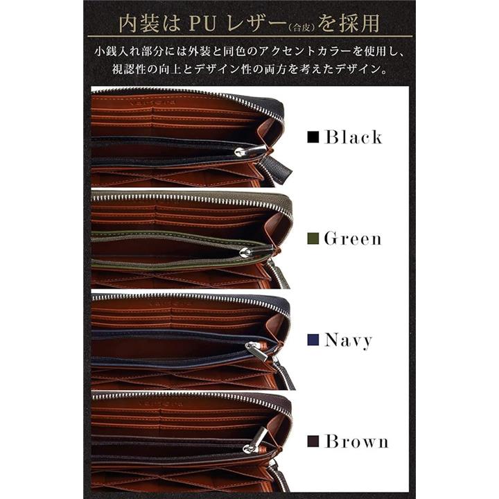 variora「持ち歩きたい物を持ち歩く為の長財布」 カード類23枚を収納出来る大容量 ハニカム構造のカードポケット採用 本革製 ラウンドファスナー (Green) |