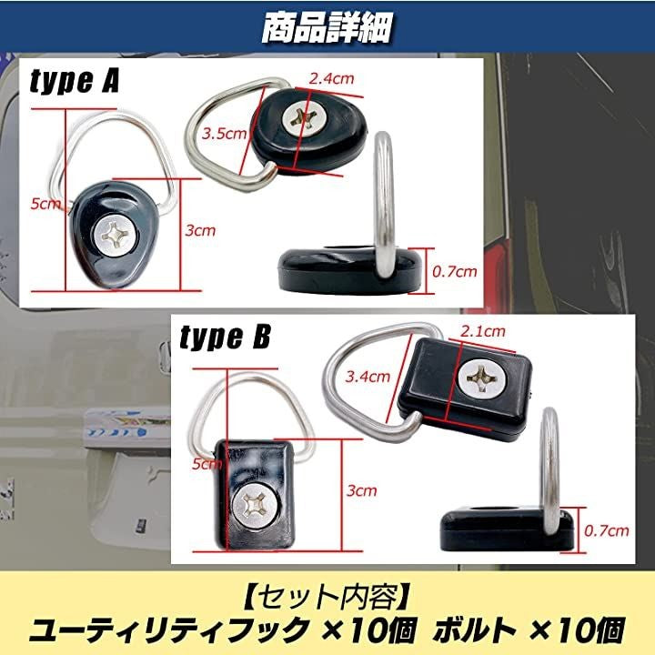 ユーティリティフック ホンダ N-VAN フリード 荷室用 M6 専用ビス付 10個 セット HONDA Nバン 軽バン 汎用 社外 車用