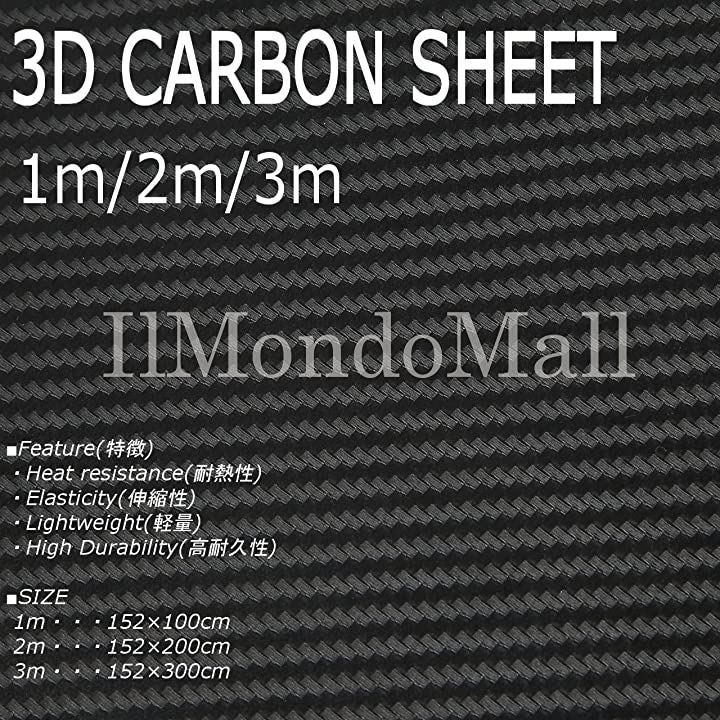 「IlMondoMall」 驚異の立体感 3D カーボンシート カーボンステッカー 汎用 (黒 152x35cm_) |