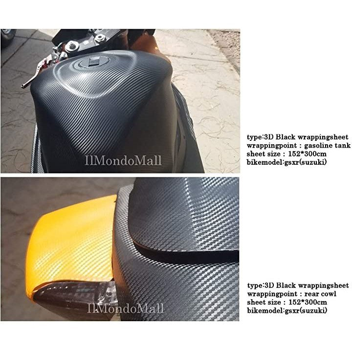 「IlMondoMall」 驚異の立体感 3D カーボンシート カーボンステッカー 汎用 (黒 152x300cm_) |
