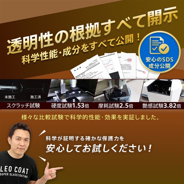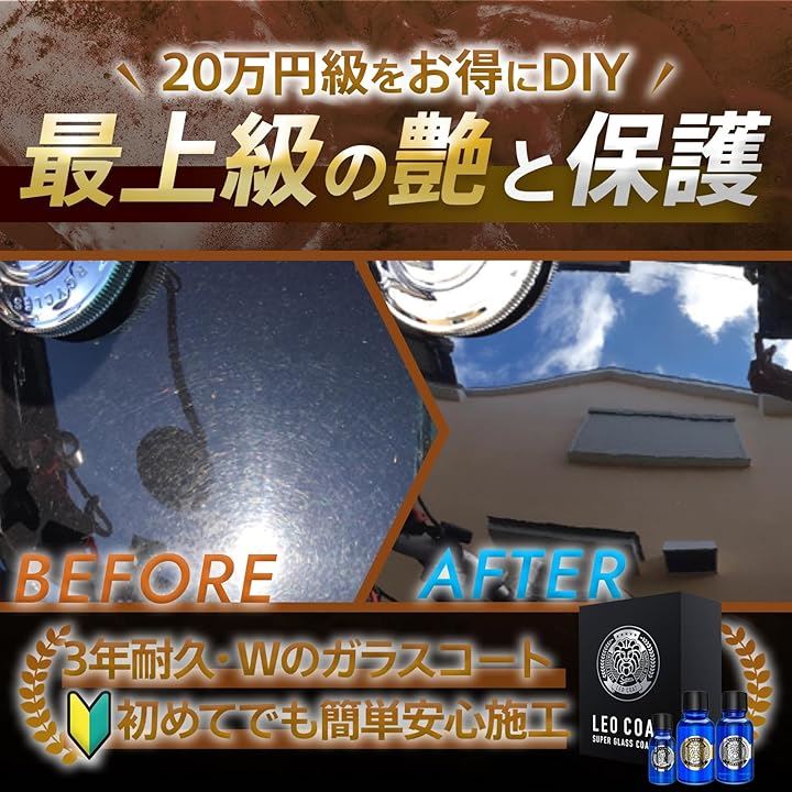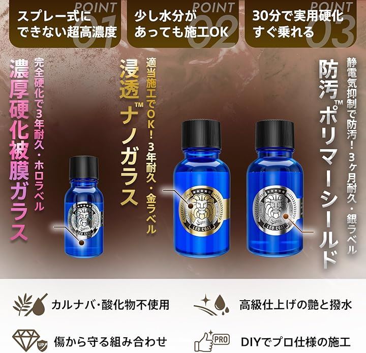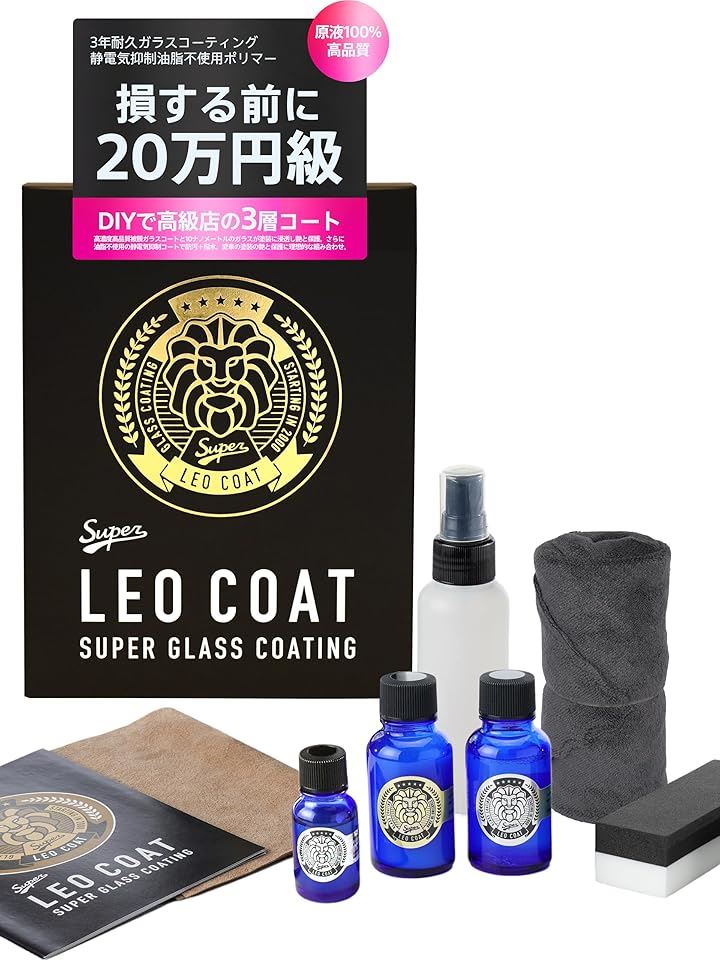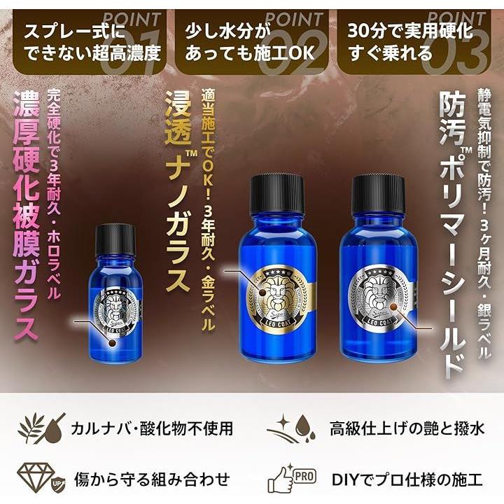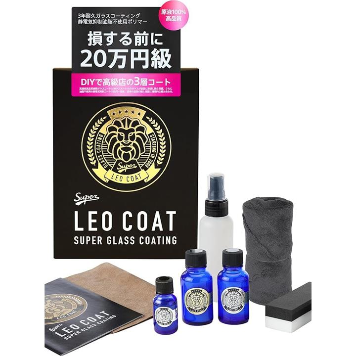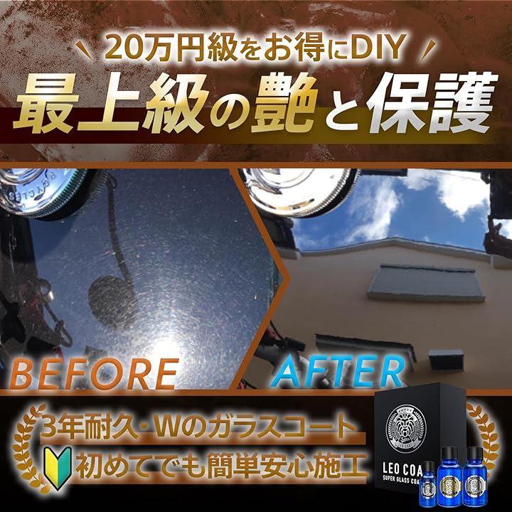 最上級ガラスコーティング 日本製 親水+撥水の滑水 3層コート 艶と光沢で高耐久保護 車 バイク レオコート