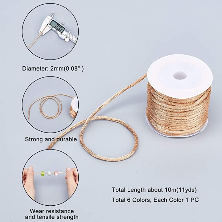 互換品 ナイロン紐 約10m/巻き 6ロール 手編み ブレスレット 直径2mm ナイロン糸 結び紐 手芸 工芸 ナイロンコード ハンドメイド DIY用 クラフト 手芸用品 手作り 材料 素材 茶色