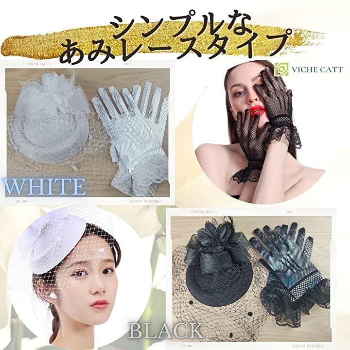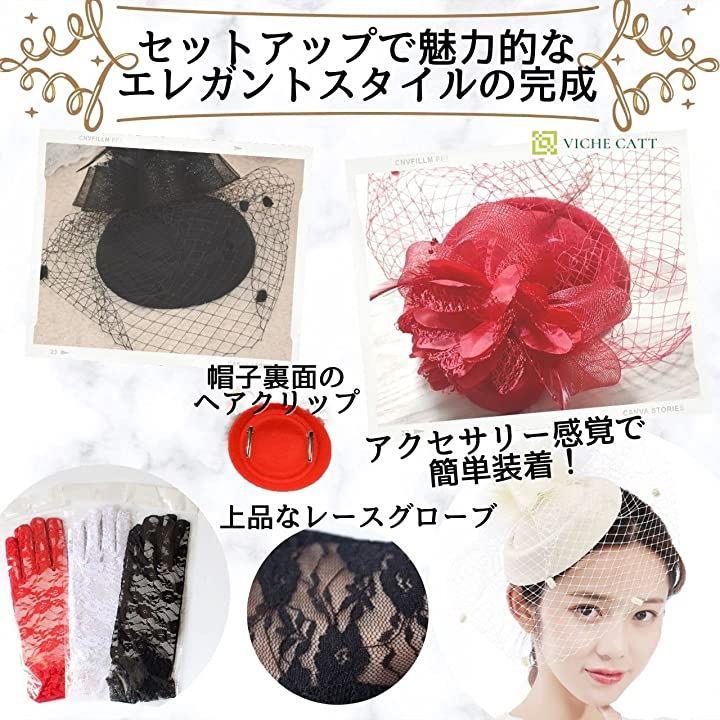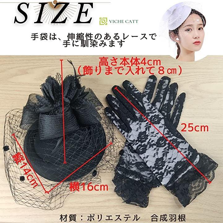 ・サイズ:カクテルハット縦14cm 横16cm 高さ本体4cm、飾りまで入れて8cm (裏面にクリップ2個つき) 手袋 長さ25cm 幅:伸びるレースなので手になじみます。