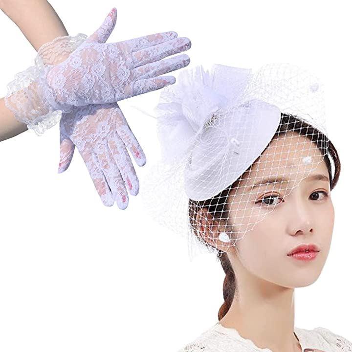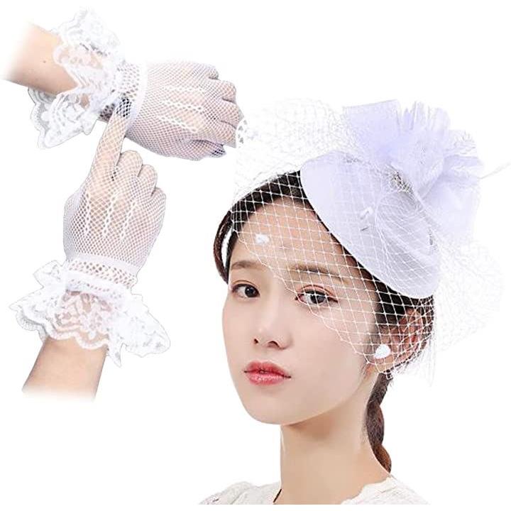 [ルクシア フィル] カクテル ハット 帽子 トーク帽 ブライダル ウェディング レディース ヘッドドレス ヘアアクセサリー 髪飾り レース手袋 セット(Aタイプ) |