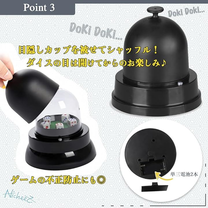 ダイス カップ 電動 サイコロ 自動 振り機 取り外し可能 チンチロ ダイス5個セット