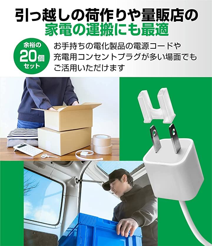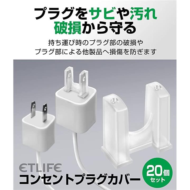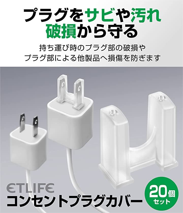 コンセントプラグカバー アーチ型ブリッジ構造でプラグが曲がらない 保護カバー 電源 キャップ 20点セット