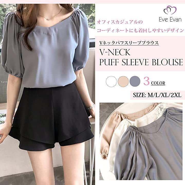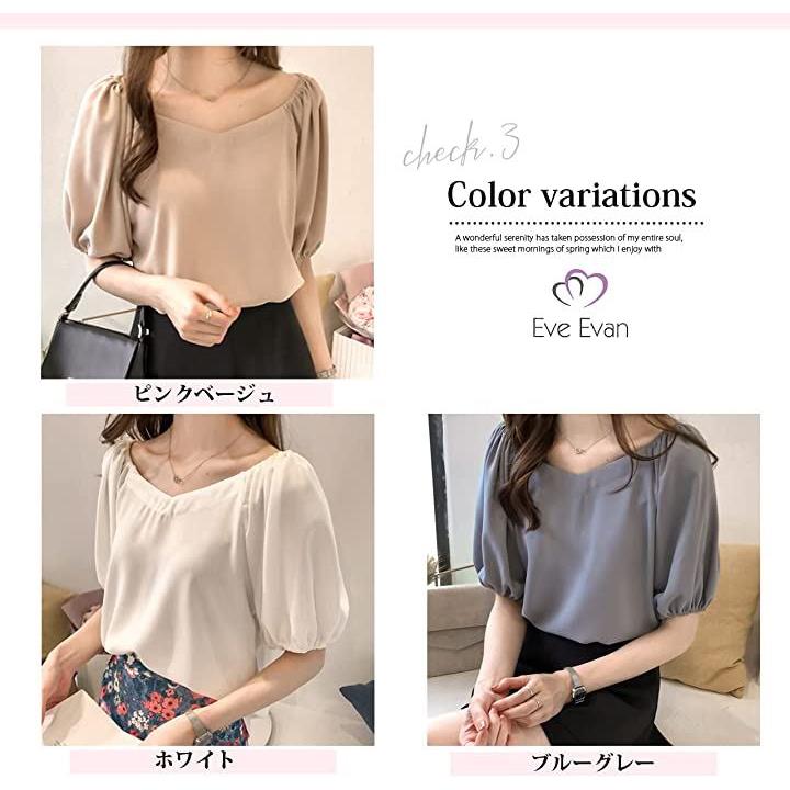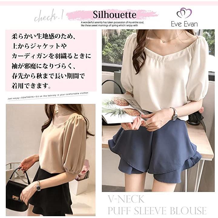 [イヴエヴァン] ふんわり袖 シフォン ブラウス 五分袖 トップス バルーン袖 |