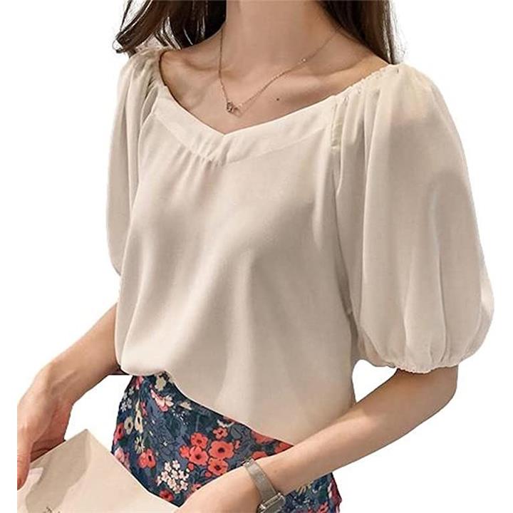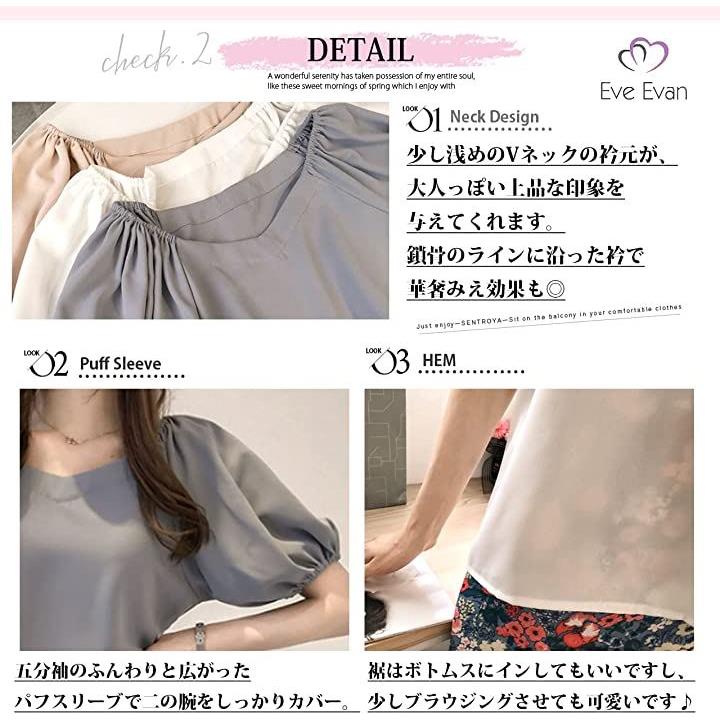 ・「シンプルで合わせやすいデザイン」 Vネックやパフスリーブといったデザイン性はしっかり兼ね備えているので、花柄やレースのスカートはもちろん、シンプルなパンツやスカートを合わせていただくだけで、コーディネートが完成します*