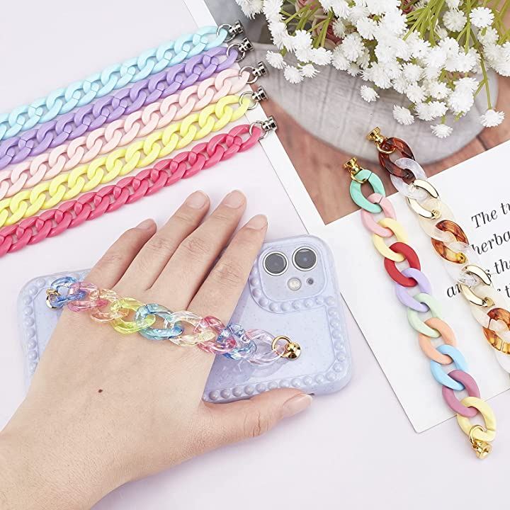 8本いり 携帯チェーン スマホチェーン 2サイズ 携帯用ストラップ 交換用ハンドル DIY 落下防止 ハンドメイド ネジ付き 長さ16.5~18cm