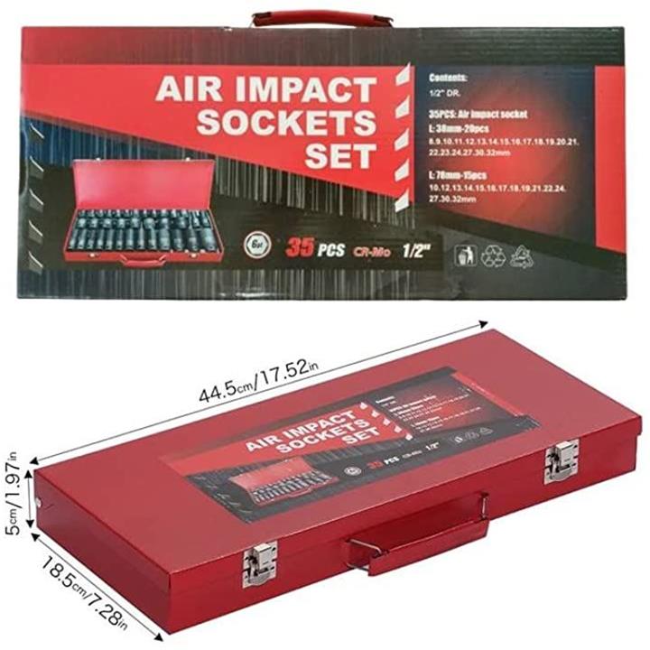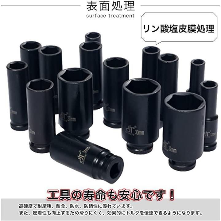 耐食・耐摩耗 リン酸塩皮膜処理 インパクトソケット 六角 セット 35個 パーカー処理 収納ケース付き 1/2 12.7mm ディープ ビット ショート