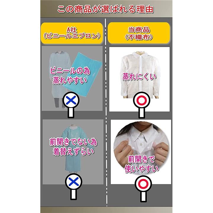 作業服 使い捨て エプロン 前開き 白衣 レディース 作業着 M:10枚