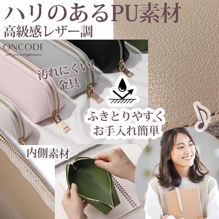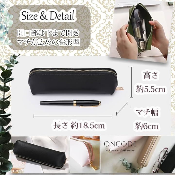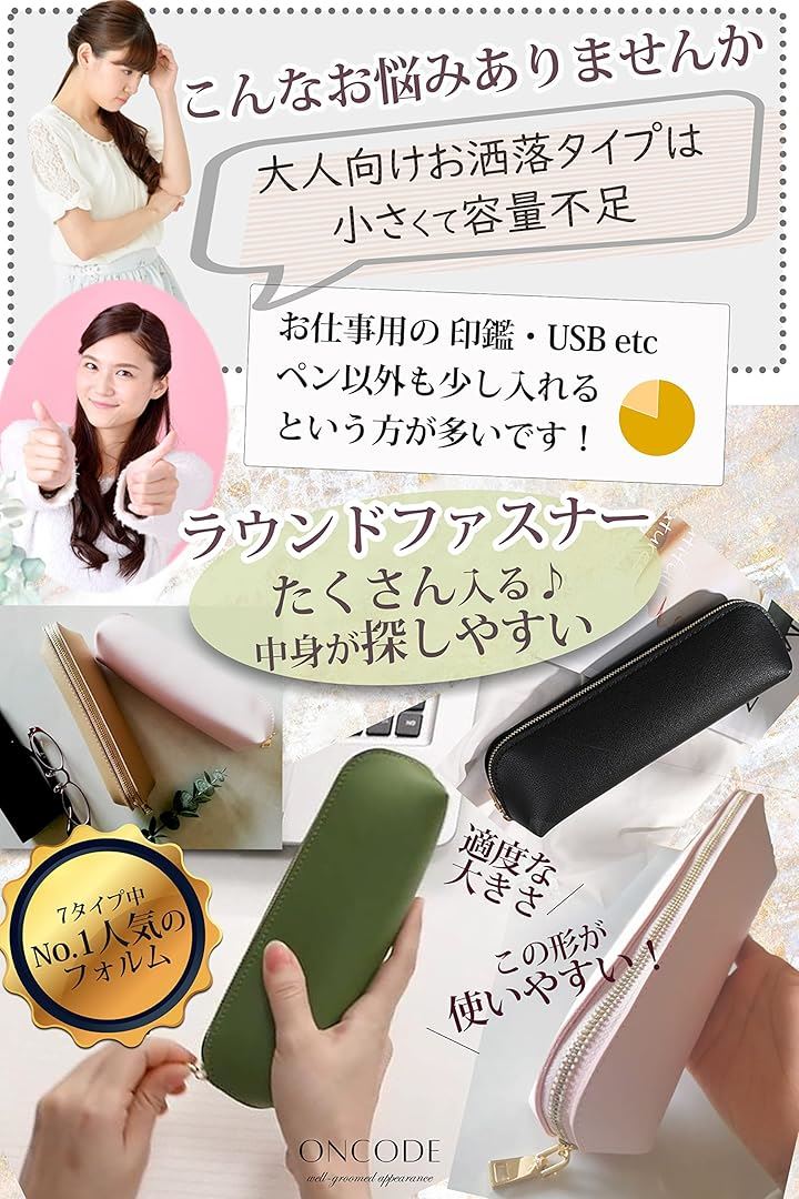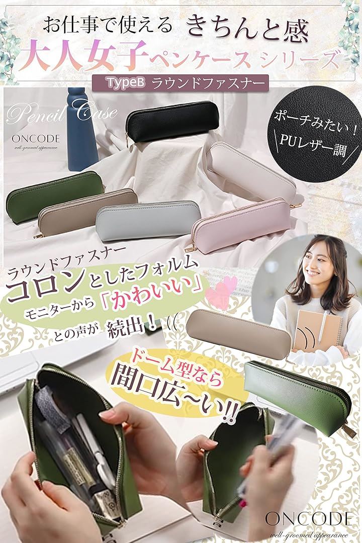 ペンケース PUレザー調 おしゃれ 大人女子 筆箱 シンプル 大容量 ラウンドファスナー