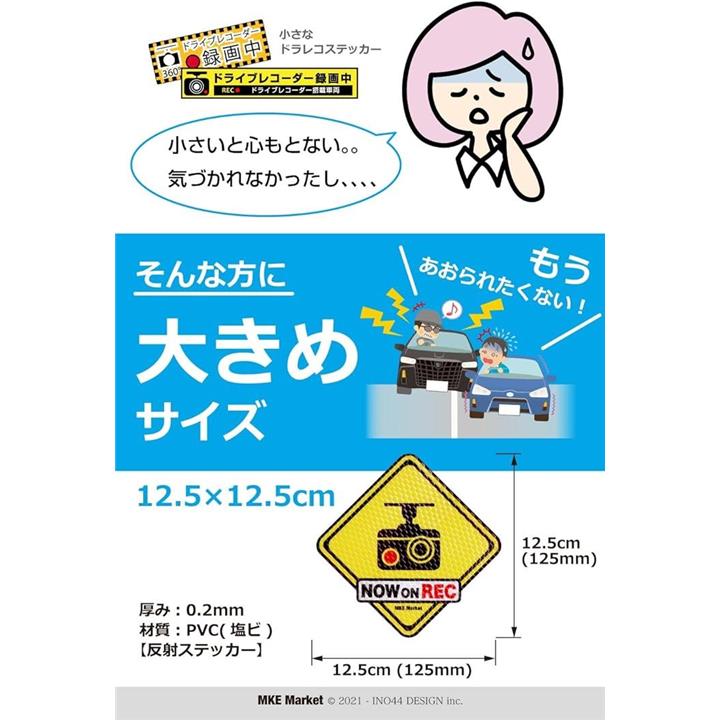 MKEマーケット 耐水 ドラレコ 録画 カーステッカー 反射 シール 日本製 REC標識