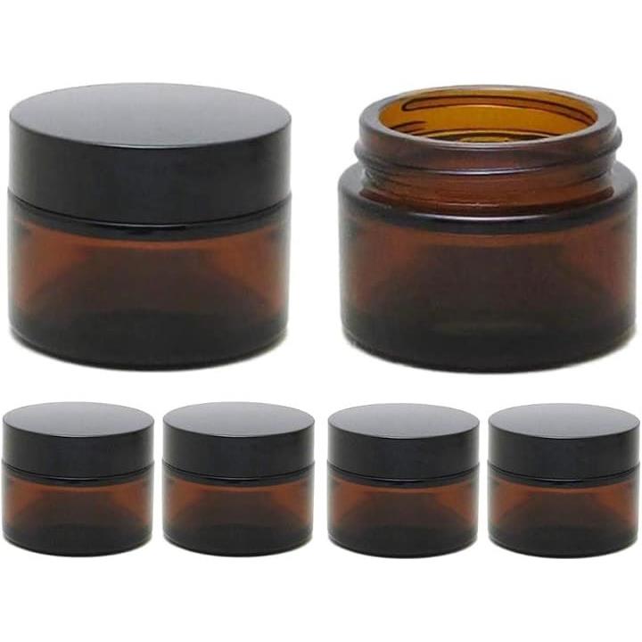 クリーム容器 30g 遮光瓶 ガラス製 クリームジャー つめかえ 保存用 中蓋付き ブラウン 6個セット