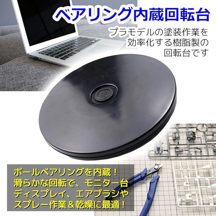 回転台 回転盤 塗装 ペインティングスタンド 乾燥 展示 模型 ディスプレイ 撮影用 直径 20cm ブラック