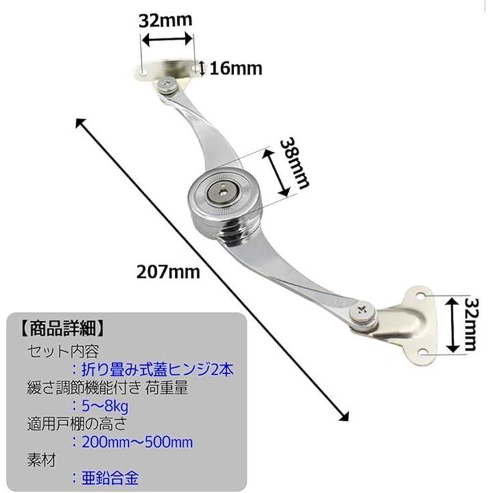 蓋ヒンジ ヒンジステー 開閉 開け閉め 金具 部品 パーツ 蝶番 折り畳み式 リフトアップサポート シルバー