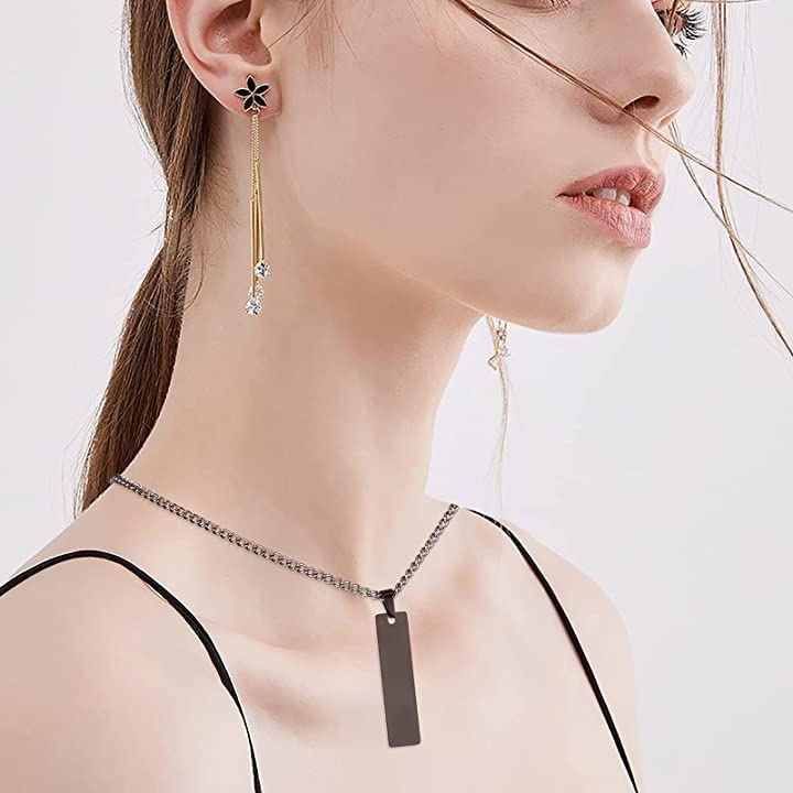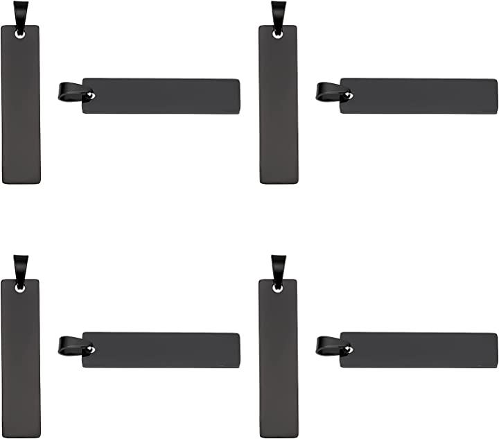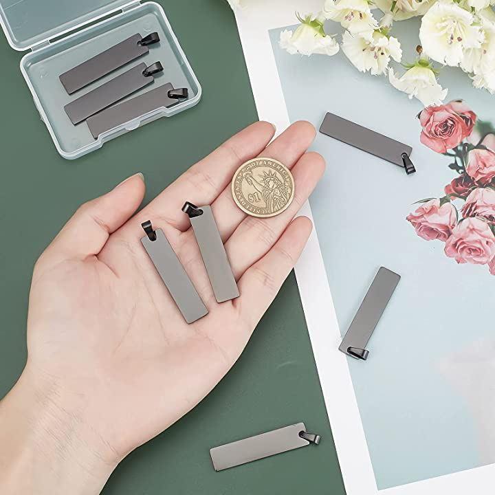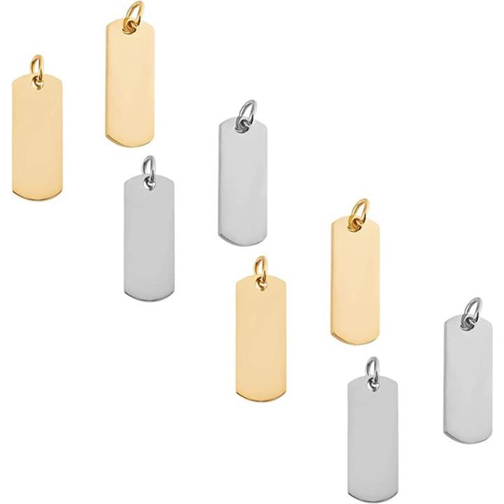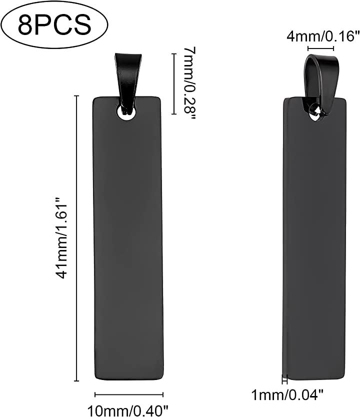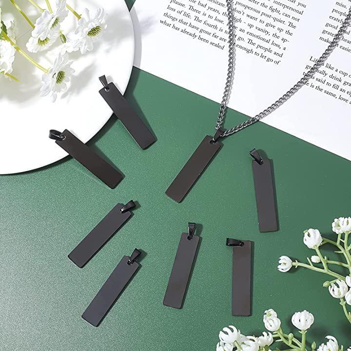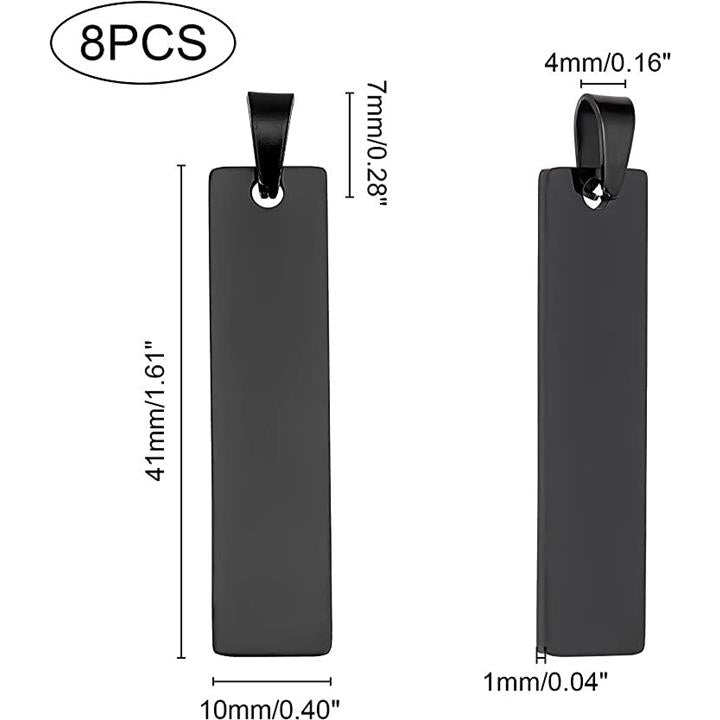 8個 ブラック 黒いネームタグ 304ステンレスチャーム ブランクタグ