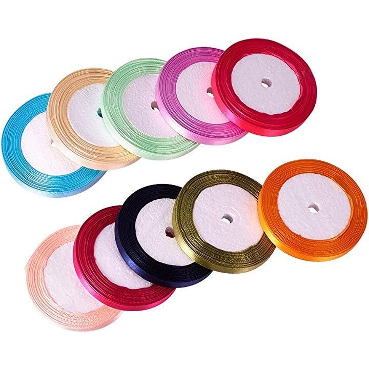 PandaHall サテン リボン DIY用 片面 手芸 雑貨 工芸品 飾り 10巻10色ランダム カラフル 手芸用品 アクセサリーパーツ 手作り
