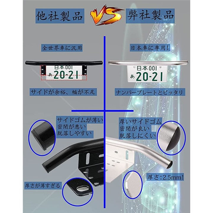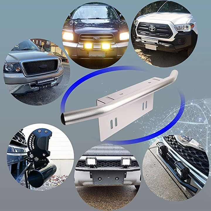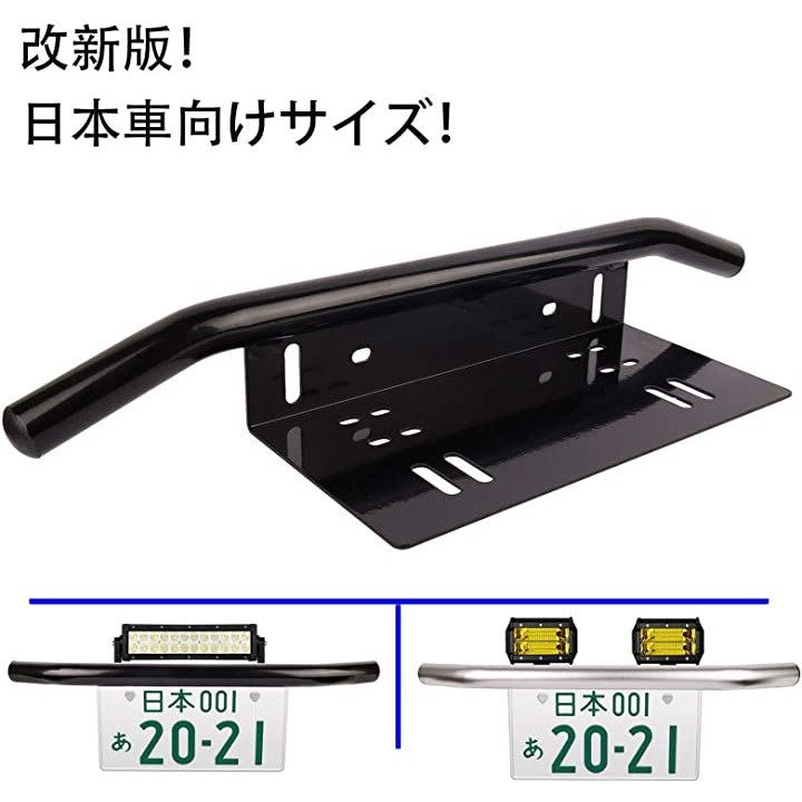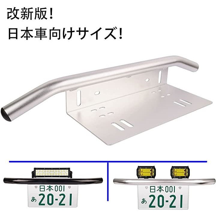 最新版 日本車専用 汎用 前照灯 作業灯 ワークライト ライトバー フォグランプ 等 取り付けため用 ライセンスプレート スタンド ステー ナンバープレートブラケット パイプバンパー 1個入り シルバー