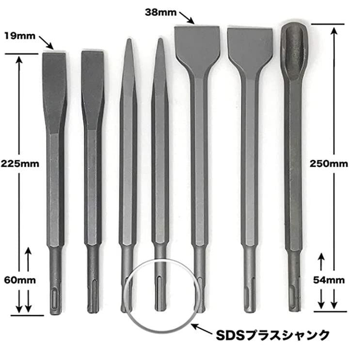 電動ハンマー用 チゼル SDS プラス シャンク 225mm~250mm タガネ 4種 7本セット コールド チス カッター U型