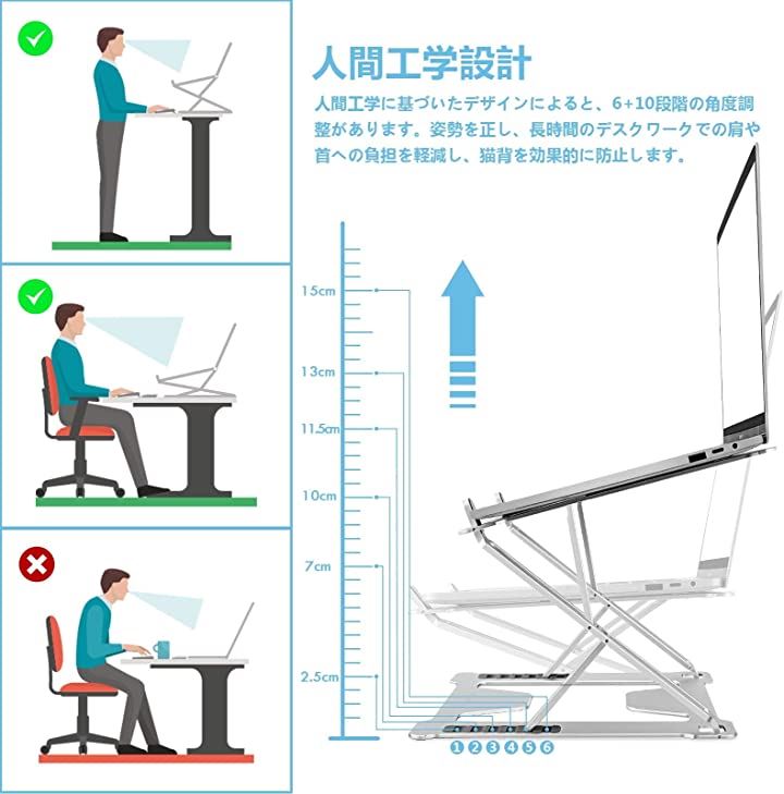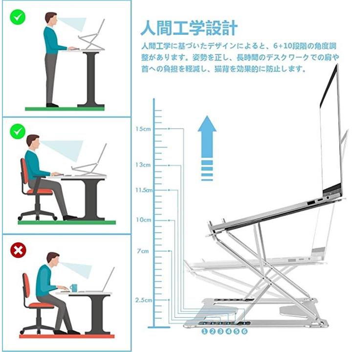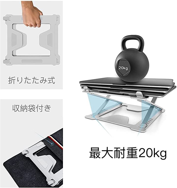 互換品ノートパソコンスタンド PCスタンド タブレットスタンド アルミ合金製折りたたみ式