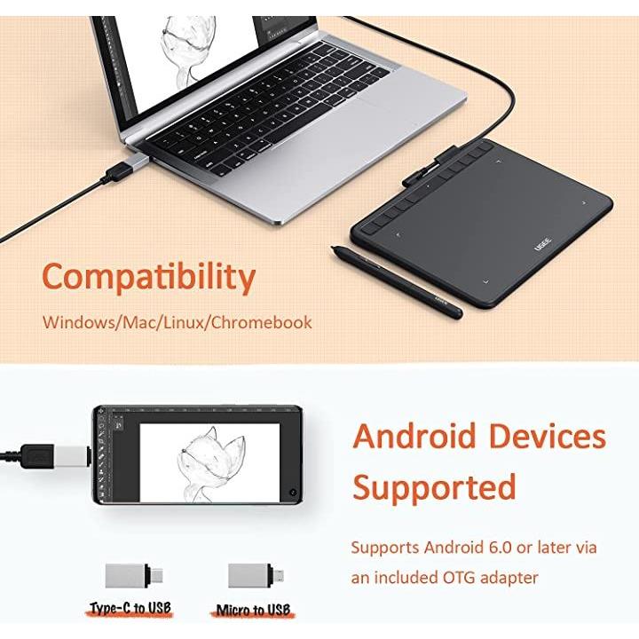 互換品UGEE ペンタブレット ペンタブ S640 板タブ 6.3x4インチ ショートカットキー10個 8192レベル筆圧 絵描き 充電不要ペン OTGアダプター付き イラスト入門用 超薄型 |