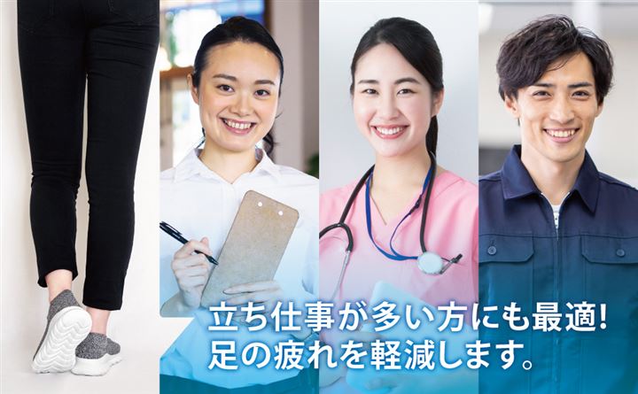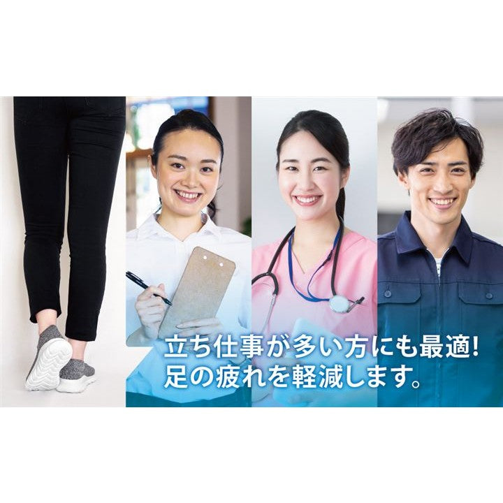 普段履き、スポーツ用としてだけでなく店舗勤務、医療・福祉関係、清掃員の方などにもおすすめの長時間履いていても足の疲れにくいシューズです。