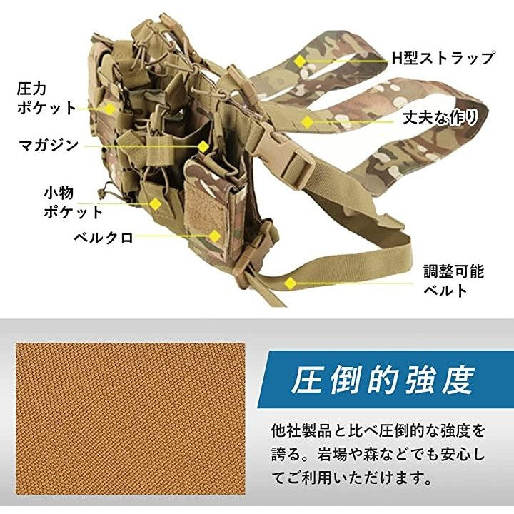 「機能性」Molle規格に対応しているので、互換性のあるタクティカルベストプレートキャリアバッグバッグパックホルスターレッグホルスターポーチ等の他の装備との組み合わせが可能です。