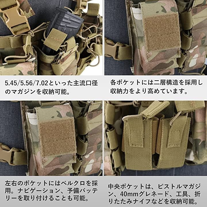 ・「充実した収納ポケット」マガジン収納ポケットには、5.45/5.56/7.02といった主流口径のマガジンを収納可能です。