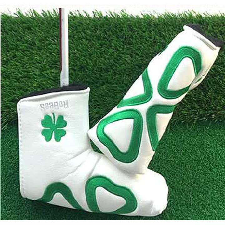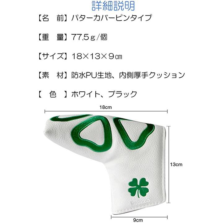 日本企画 パターカバー ヘッドカバー ピンタイプ スコッティーキャメロン オデッセイに適合 高級防水PU革 面ファスナー開閉式 クローバー刺繍
