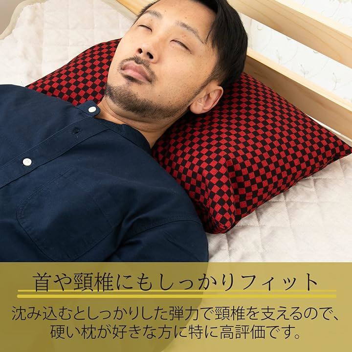 枕 まくら そば殻 そばがら そば枕 そばまくら 市松模様 43 x 63cm 赤