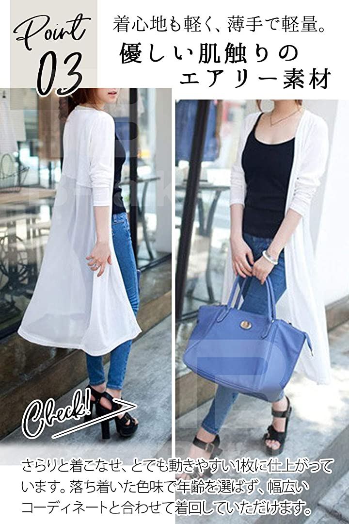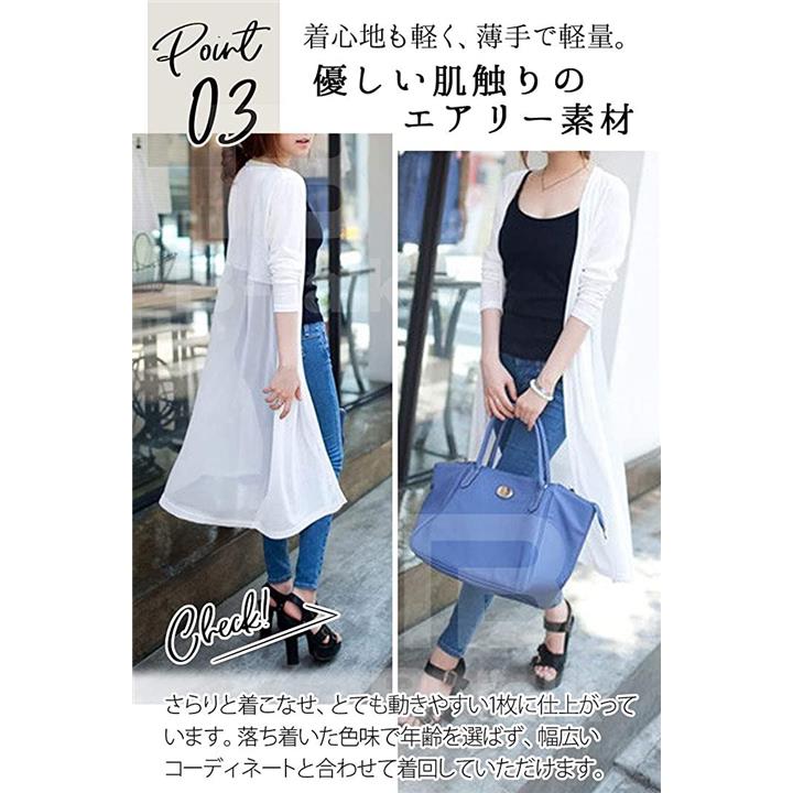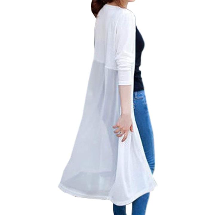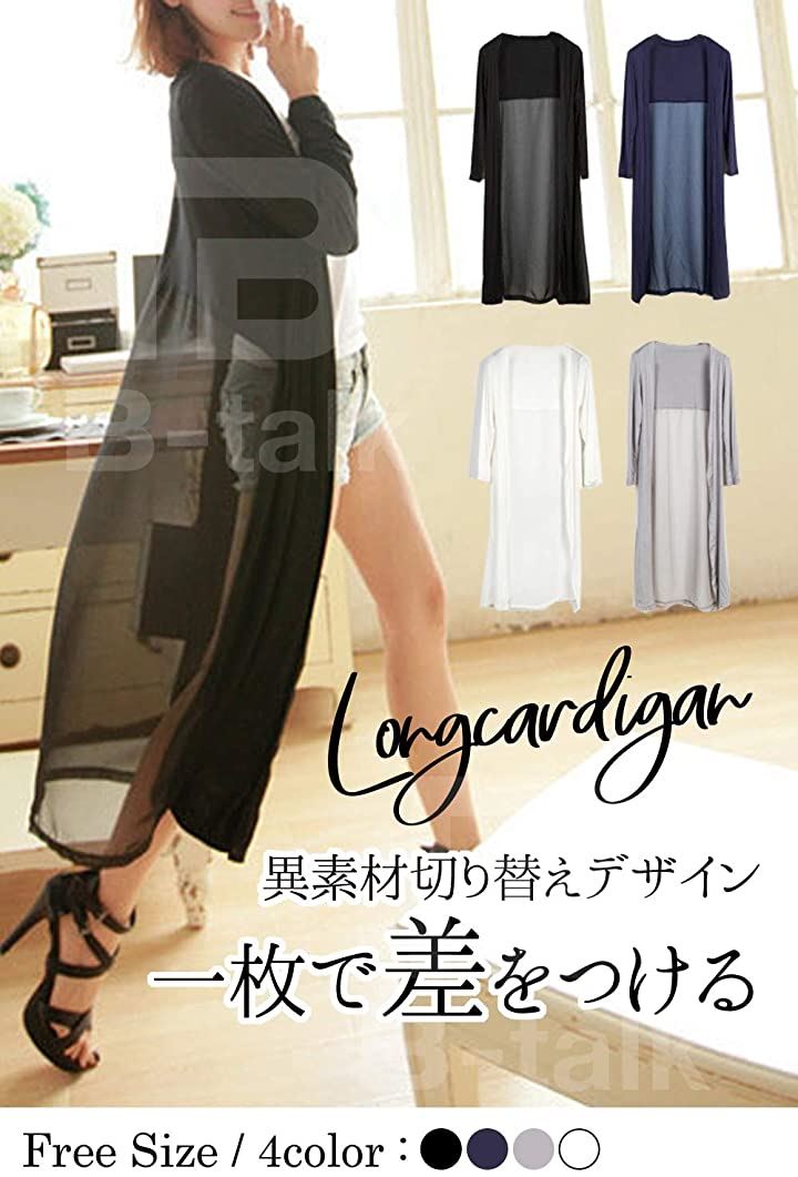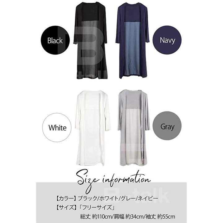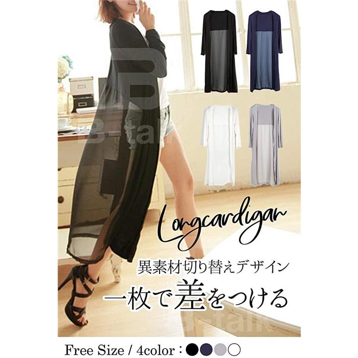 [ビートーク]BT04 ロングカーディガン レディース 透け感 切り替え マキシ UV 冷房対策 羽織り 薄手 シースルー ホワイト |