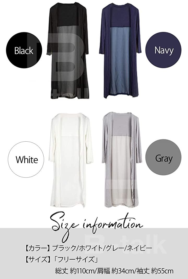 ・「カラー」ブラック/ホワイト/グレー/ネイビー「サイズ」「フリーサイズ」:総丈 約110cm/肩幅 約34cm/袖丈 約55cm