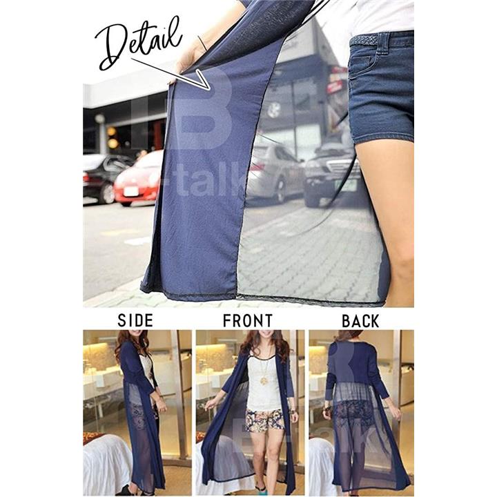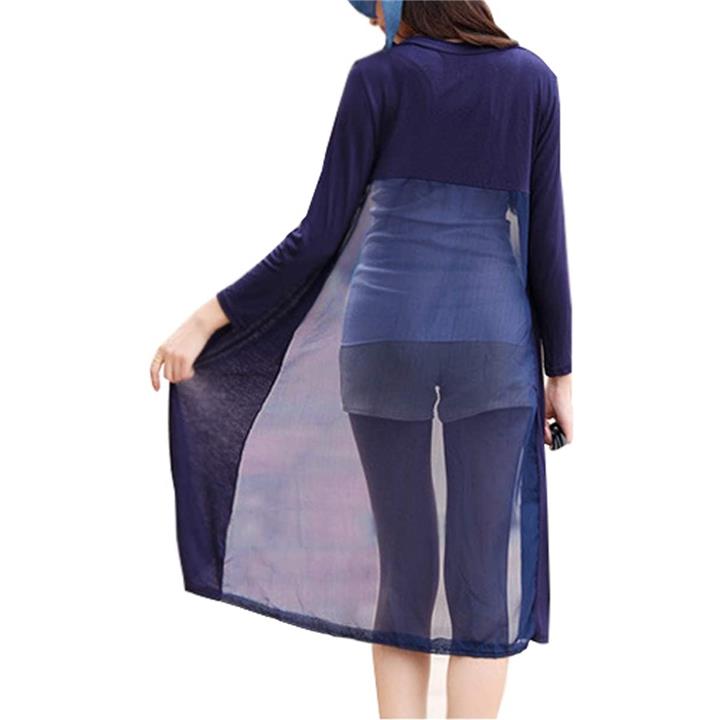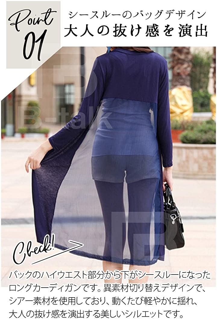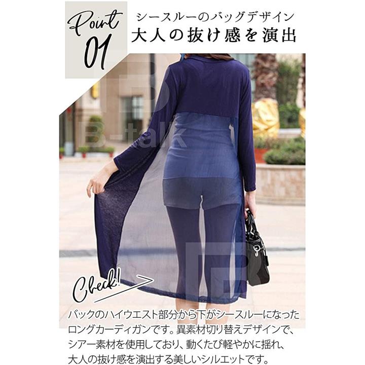 [ビートーク]BT04 ロングカーディガン レディース 透け感 切り替え マキシ UV 冷房対策 羽織り 薄手 シースルー ネイビー |