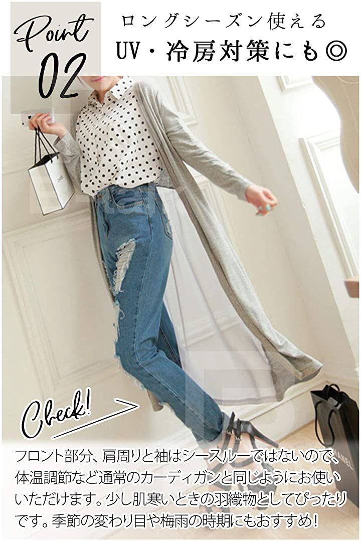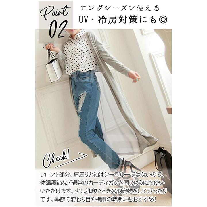 [ビートーク]BT04 ロングカーディガン レディース 透け感 切り替え マキシ UV 冷房対策 羽織り 薄手 シースルー グレー |
