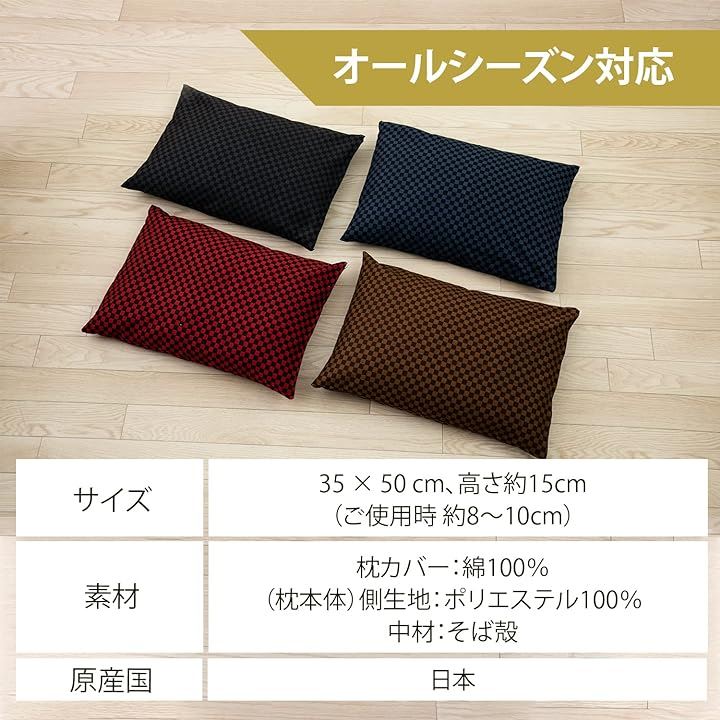 枕 まくら そば殻 そばがら そば枕 そばまくら 市松模様 枕カバー付き 35 x 50cm 日本製 黒