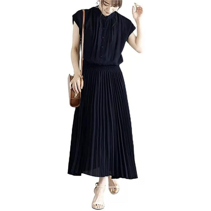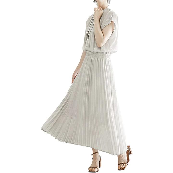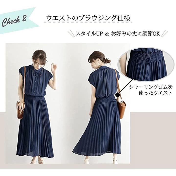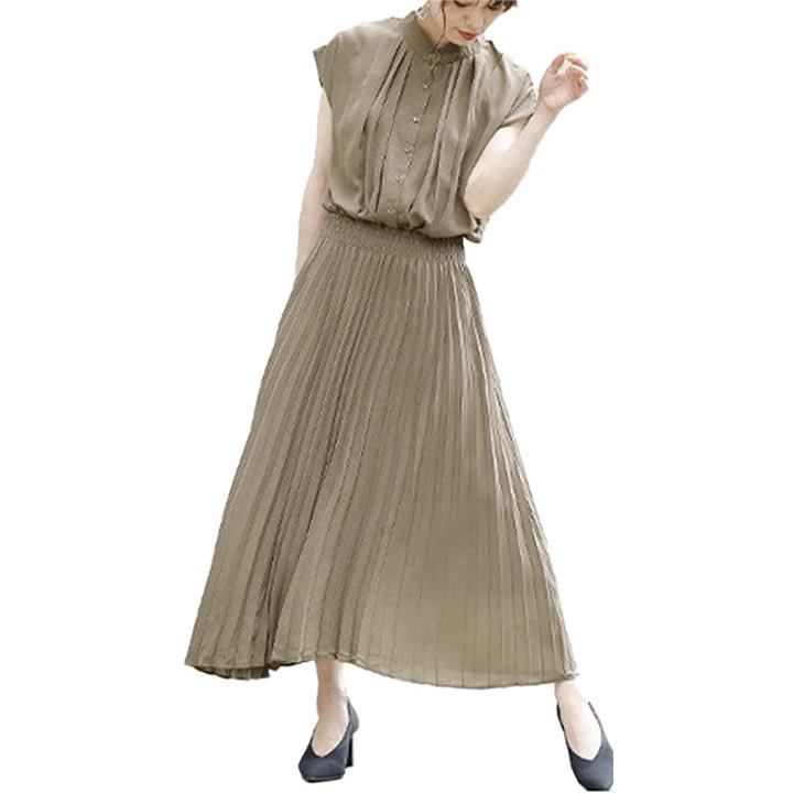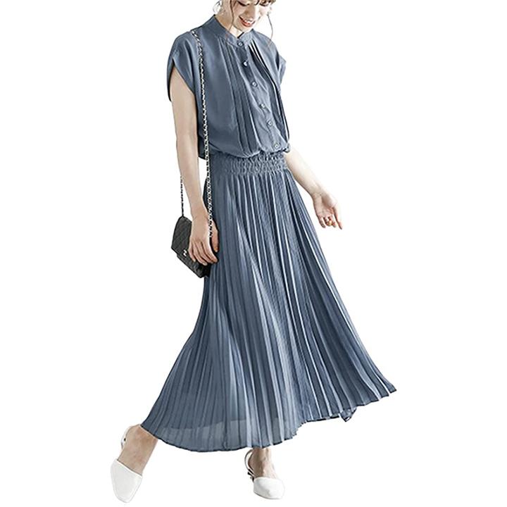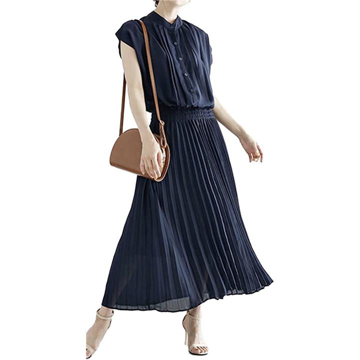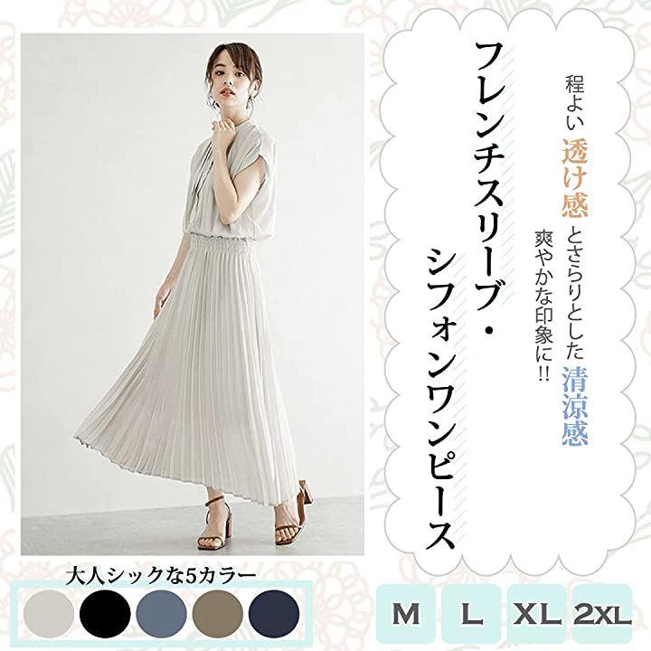 [ジェームズ・スクエア] シフォン プリーツワンピース フレンチスリーブ レディース |